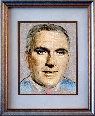 William "Life of Riley" Bendix 8"x10" light and dark pencil on gray paper in double-matted 11"x14" K-Mart frame.