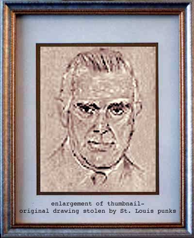 Boris "The Mummy" Karloff 8"x10" light and dark pencil on gray paper in double-matted 11"x14" K-Mart frame.