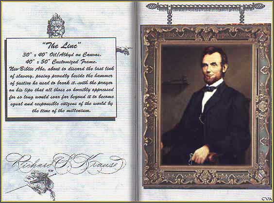 Neo-Biblic Abe about to discard the last link of slavery, posing proudly beside the hammer of justice he used to so boldly break it.