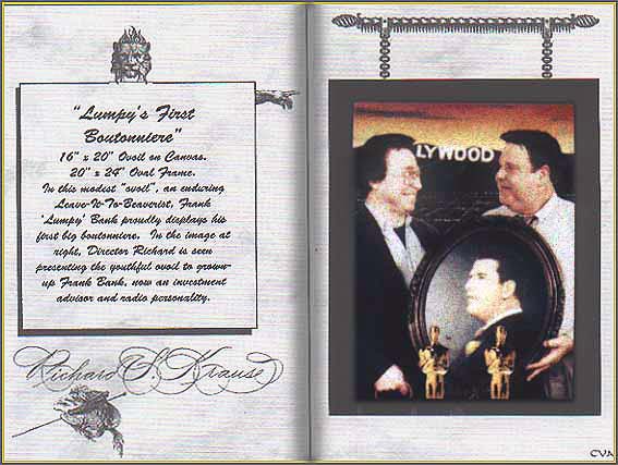 In this modest "ovoil," an enduring "Leave-It-To Beaverist, Frank 'Lumpy' Banks proid;y displays his first really big boutonniere. In the image at right, Director Richard is seen presenting the youthful ovoil to grown-up Frank Banks, now an investment advisor and radio personality. |
