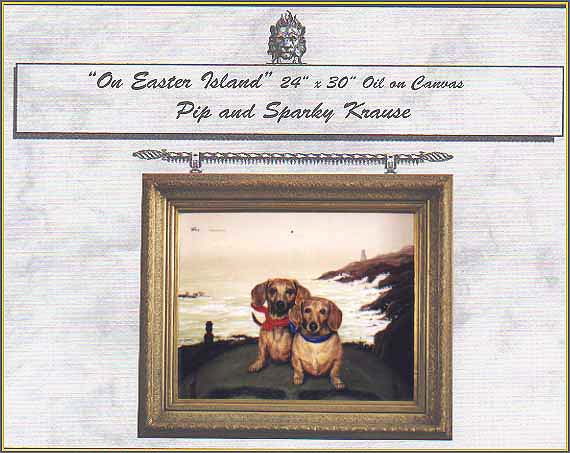 Lean Pip (born 1/91) and chubby Sparky (born 1/89) pose reverantly on the forehead of one of Easter Island's fallen Moai, determined not to repeat the big mistake.