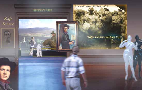 And below is the lofty Murphy's Way veranda of our repository showcasing one of our seven portraits of Audie Murphy, "In the Course Of Human Events."