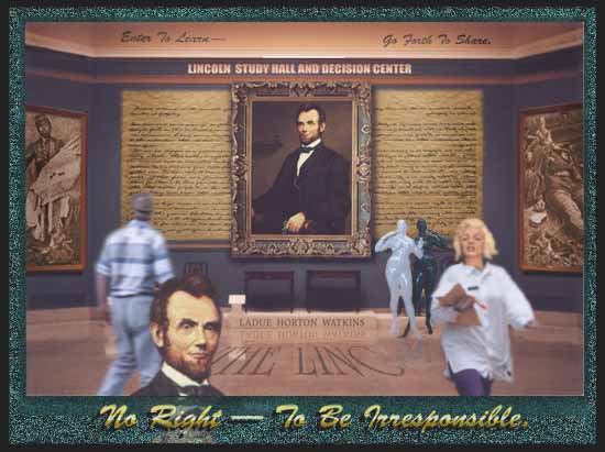 Below is a placement scrapshot taken as we happened upon the Lincoln Study Hall and Decision Center. Not suprisingly, our painting of "The Linc" seemed to have been hung quite level and well-centered. | ![]() |